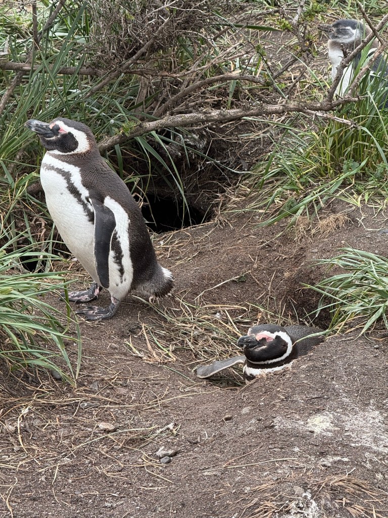 There are two types of penguins on the island, the Magellanic penguins are migratory, and may swim thousands of miles north to Brazil during the Austral winter. They dig nests in the ground and typically lay two eggs each season. Gentoo penguins in contrast do not migrate. They create nests by mounding rocks with a central depression for their eggs. Both types usually mate for life.