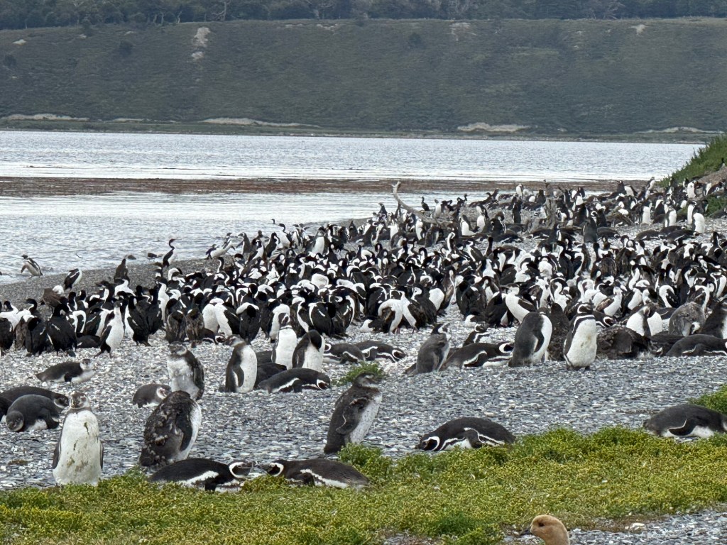 There are several tour companies that will approach the penguin colonies by boat, but only Piratour has authorization to disembark on the island. Their tours are usually booked weeks in advance, but in a stroke of luck we got four tickets for the morning tour. After a quick breakfast we walked to the Piratour kiosk and boarded the van for the 90 minute ride to Estancia Harberton, and then a short boat ride to the island. There were the penguins.