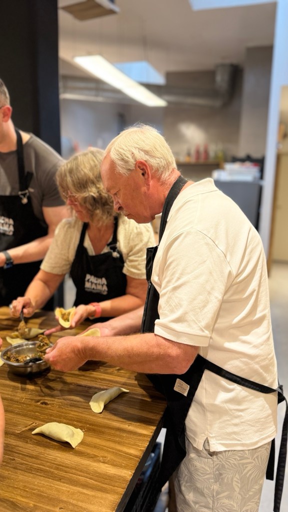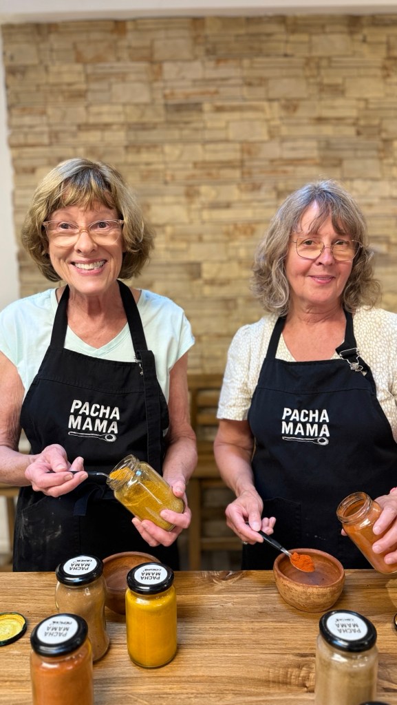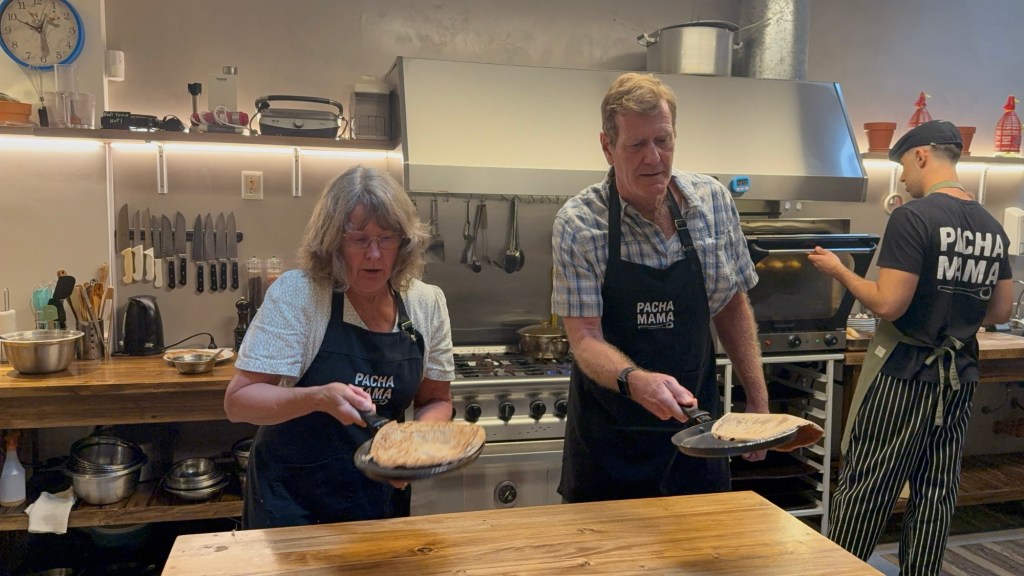 As we exit the market, there is a nearby restaurant in an old Monastery where we stop for lunch. The Monastery is beautiful, with tile work and statuary, and we sit at a shaded table along one of the galleries. The service is very slow. We get our drinks, then wait. Then we wait some more. We’re not sure our waiter has put in our order. We ask, but he doesn’t speak English, and it’s not clear he understands. We wait. Diners around us have ordered, been served, eaten and left. Finally our food arrives. Fries, empanadas and a frittata. It’s just OK. Nice place to visit, but like the market it doesn’t live up to its promise.