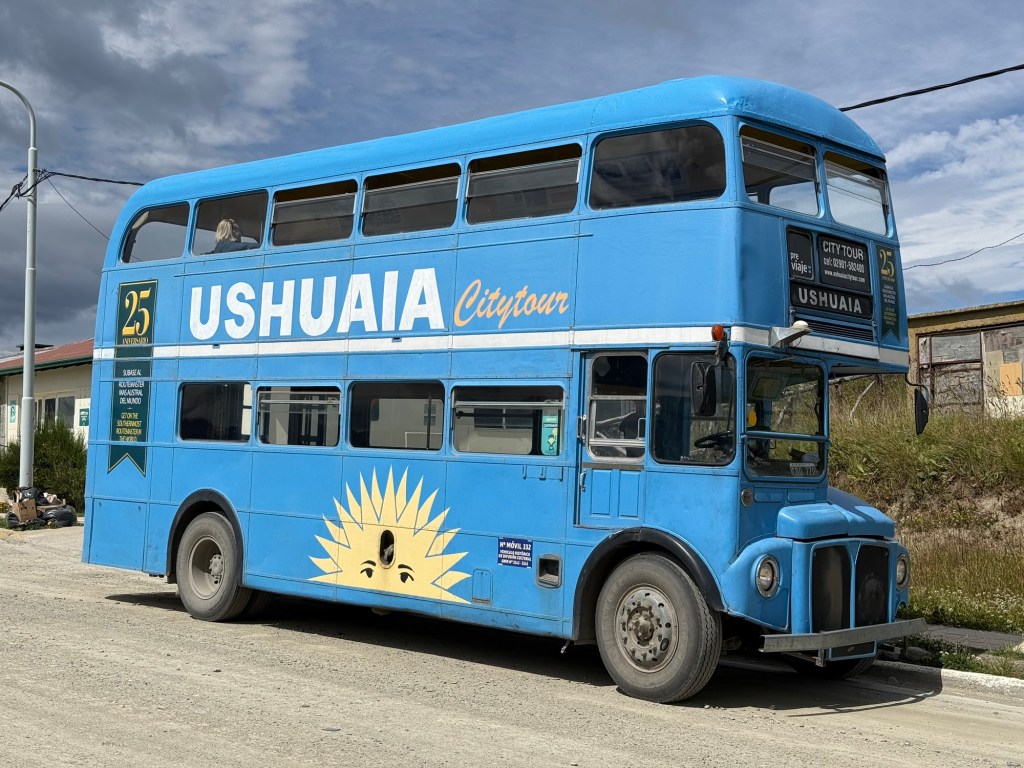 We find a three hour tour (Oh Noooo!!!) leaving at 3:30 on the Catamarán Ezequiel and buy tickets. With time to kill we do a bus tour of Ushuaia, which proves to be fun and informative. The bus is a double decker 1956 Routemaster billed as the southern most Routemaster in the world and was probably once a London bus.
