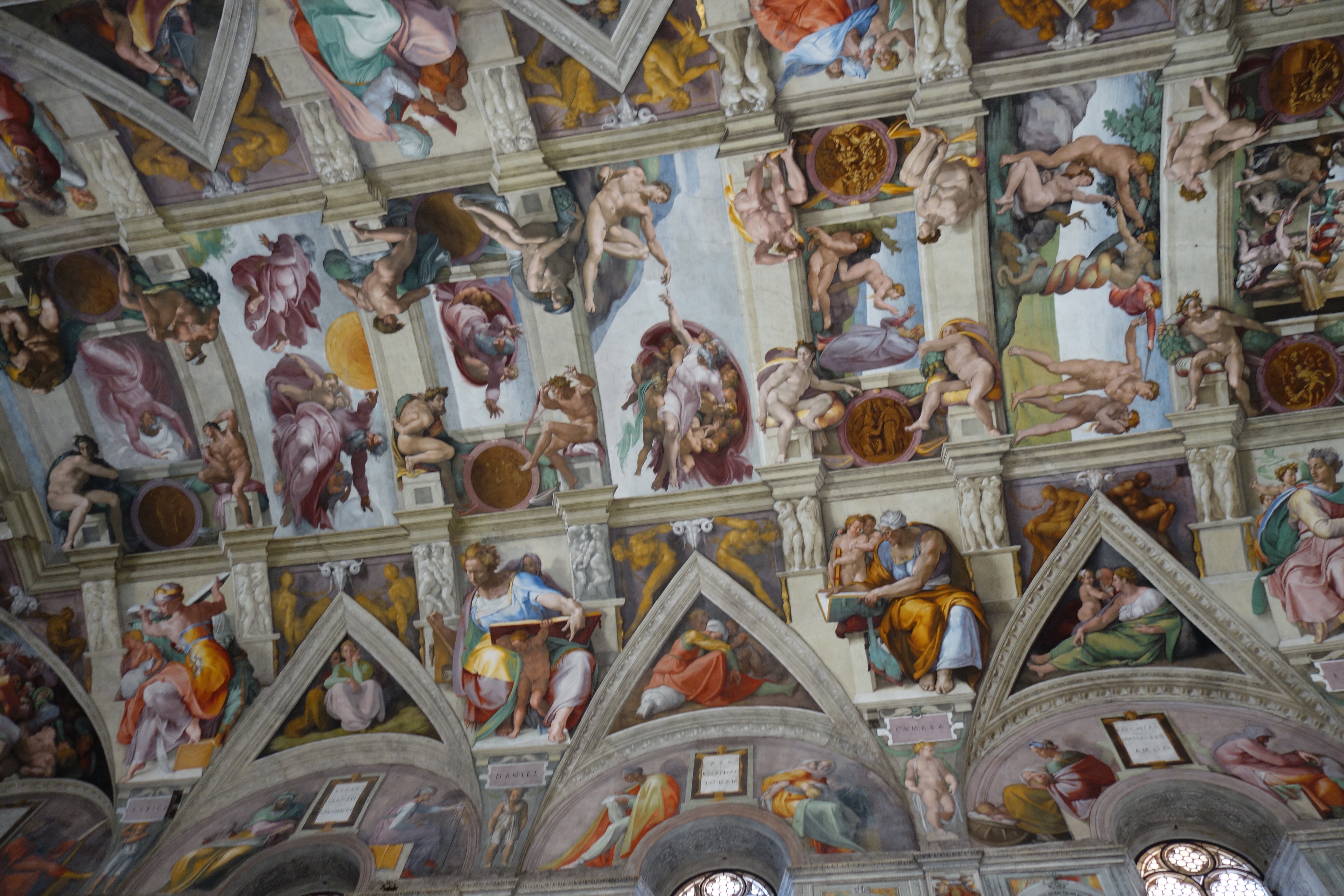 I snap an illicit picture of the ceiling as I move rapidly toward the door so I can see what it looked like at my leisure. I am out of the Chapel. I am able to breath as large portions of the crowd enter the adjacent gift shop – no doubt to get postcards of that ceiling for the same reason I took my photo. This was the worst museum visit of my life.